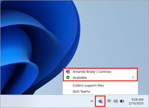 Microsoft are improving the Teams app icon and menu in the Microsoft Windows system tray. How your account is presented is being changed, and the Open option is being removed.