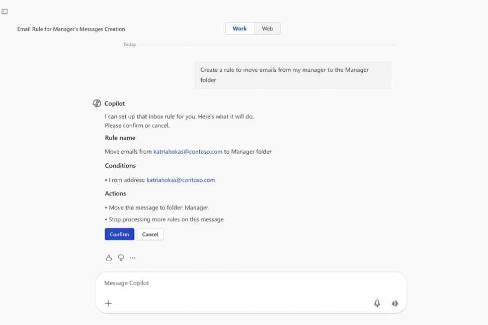 With Copilot, users can now create and view Outlook inbox rules using natural language – simply by asking.